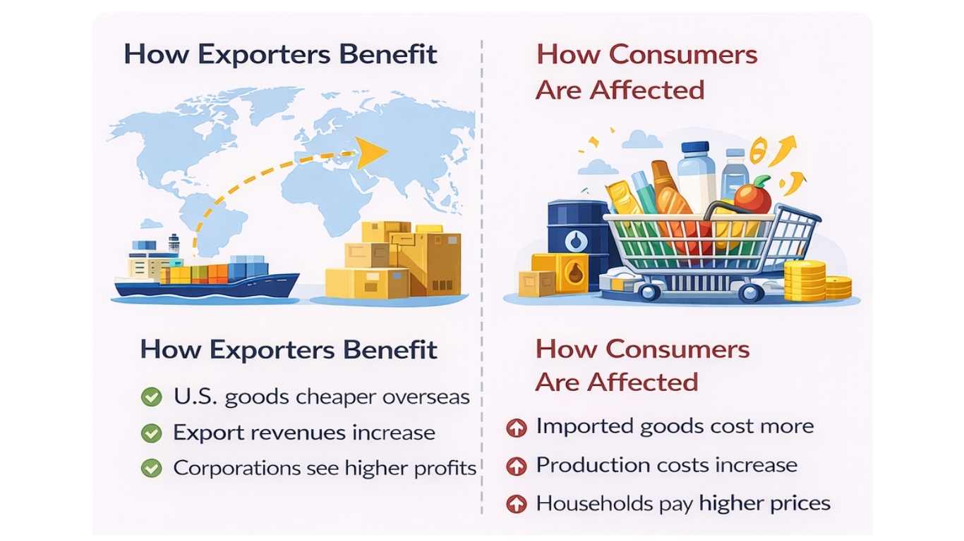 A strong dollar and a weak dollar each create winners and losers. The impact is not evenly distributed. Some sectors thrive when the dollar declines. Others feel immediate financial pressure.